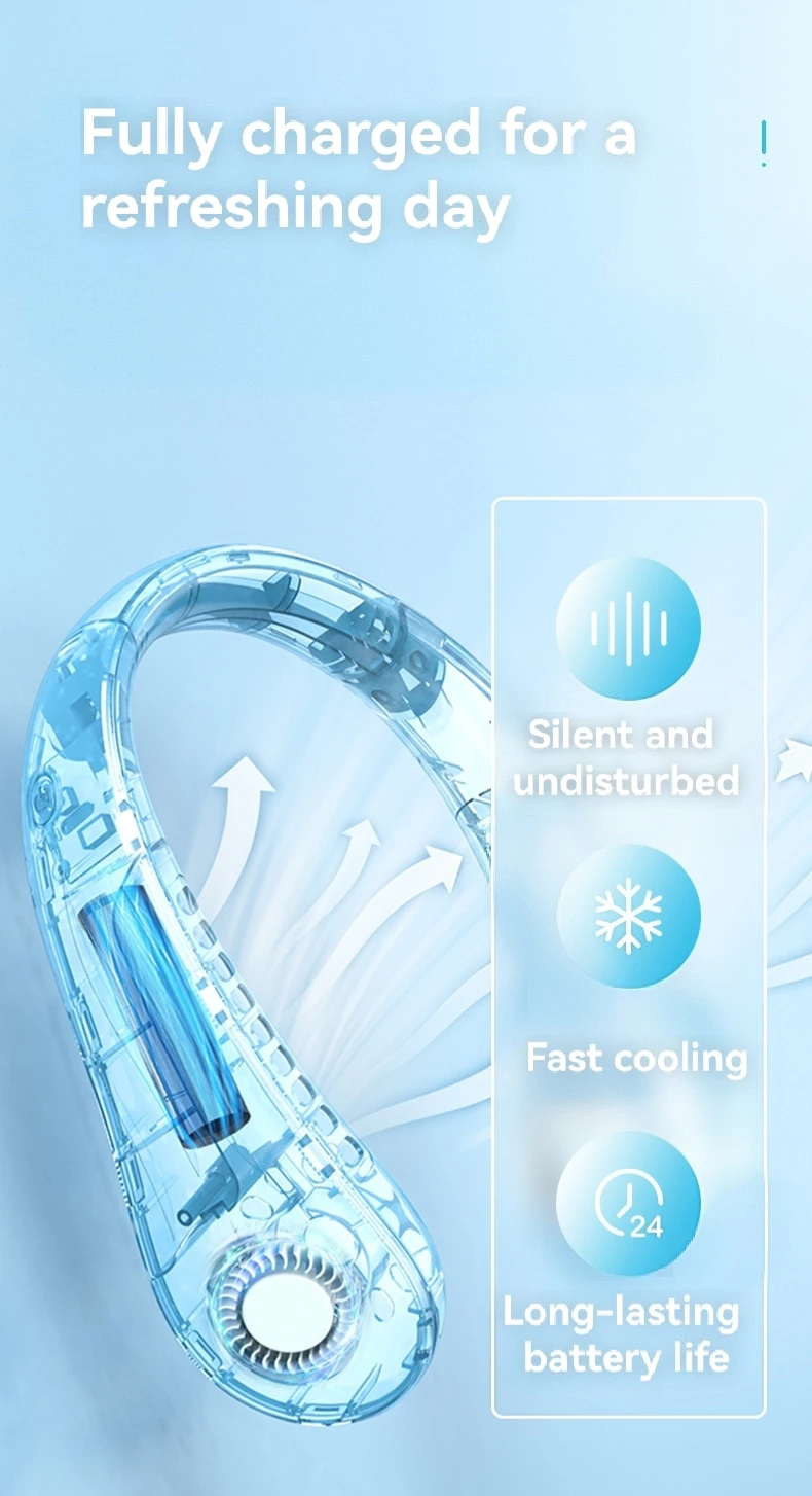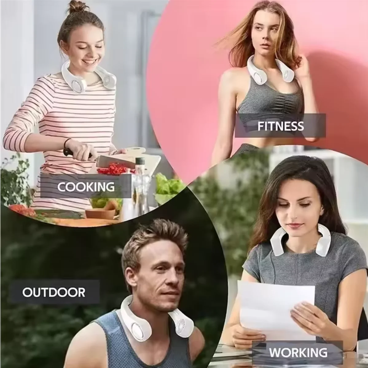 Stay cool anywhere with this portable bladeless neck fan. Designed with a lightweight hanging style, it provides hands-free cooling for sports, travel, office, and home. The safe bladeless design makes it comfortable and secure for both adults and kids.