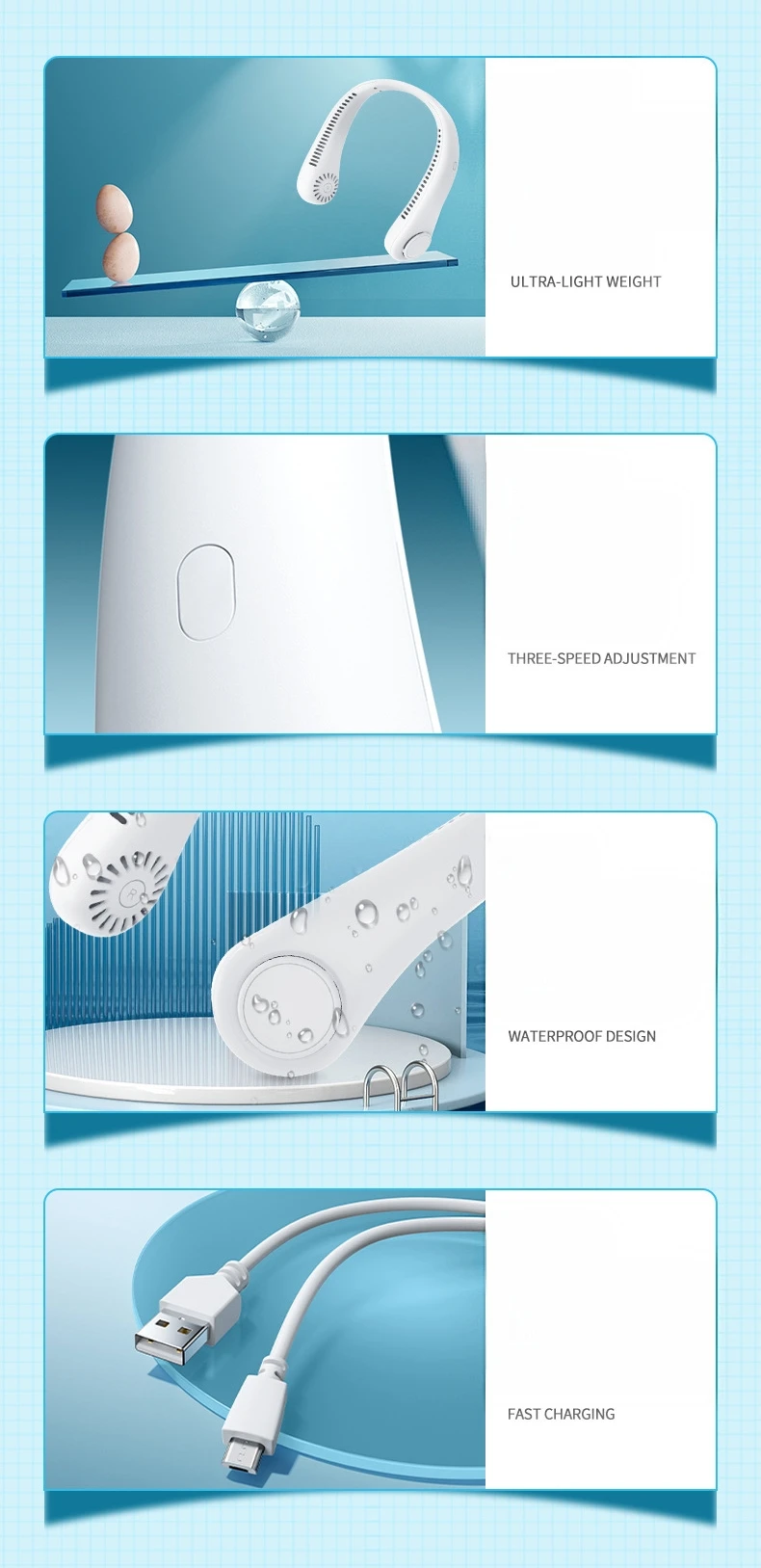 New Mini Neck Fan Portable Bladeless Hanging Neck 1200mAh Rechargeable Air Cooler